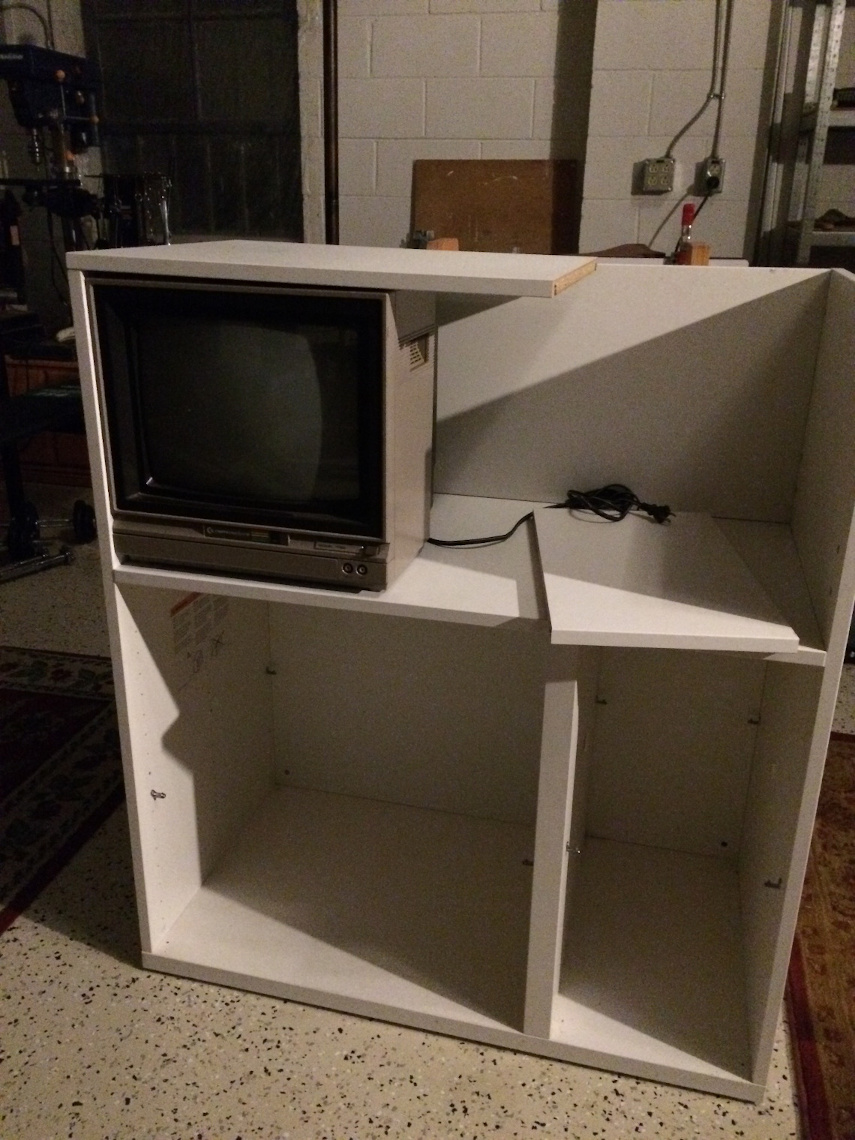 I was in a high rise apartment building downtown, pushing a white ikea desk down the carpeted hallway towards the service elevator. My plan was to repurpose this white melamine freecycled item into a retro gaming cart. I figured it would be easy, just cut the pieces down and screw them in place. I had no idea that at some point Ikea switched from making their furniture out of chipboard to completely hollow boards filled only with a thin honeycomb of cardboard. This meant that every time a portion of the desk was cut to dimension, strips of hardwood also needed to be made to fill and enforce the empty gap. Because of this, the project took way more work than I anticipated and I probably should have just built it out of plywood.